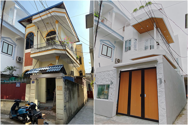 Đầu tiền là mặt tiền trước và sau khi cải tạo ngôi nhà phố