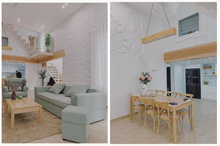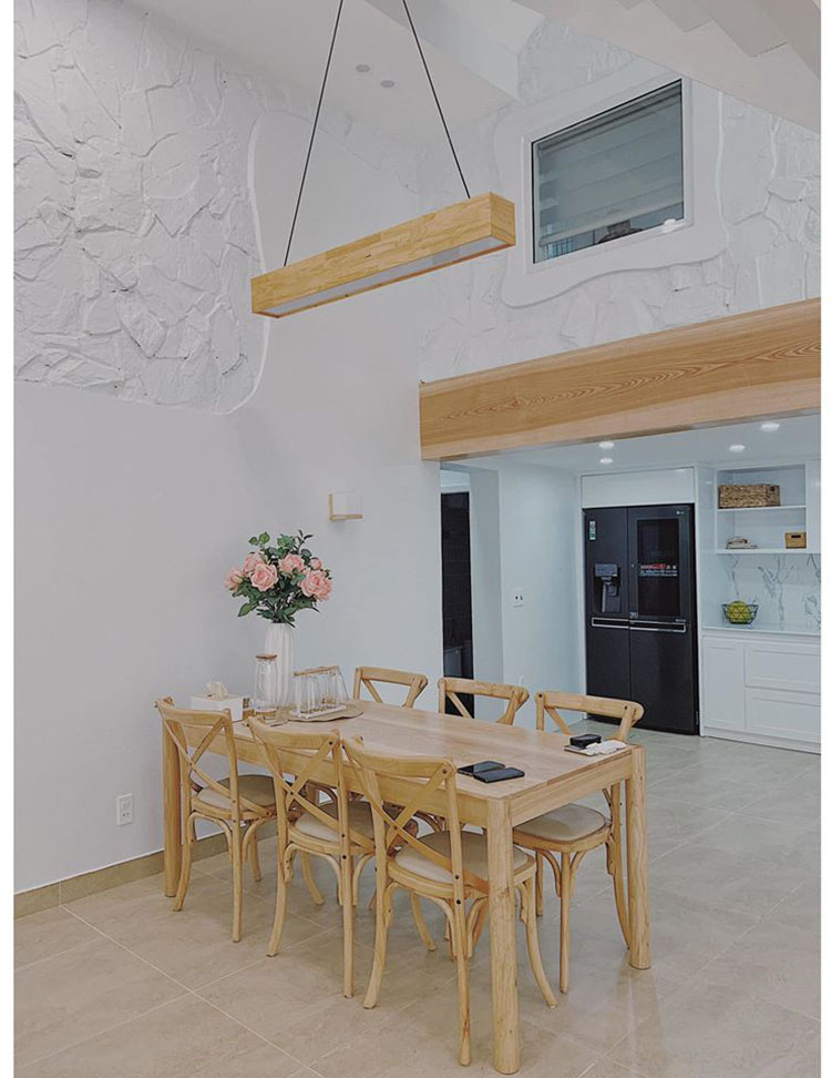 Cải tạo thiết kế nhà ống 2 tầng 1 tum cho gia chủ thích kiểu mộc, với lựa chọn gam màu trắng làm chủ đạo, vừa giúp mọi không gian luôn sang trọng hơn, thêm vào kết hợp với màu gỗ truyền thống.